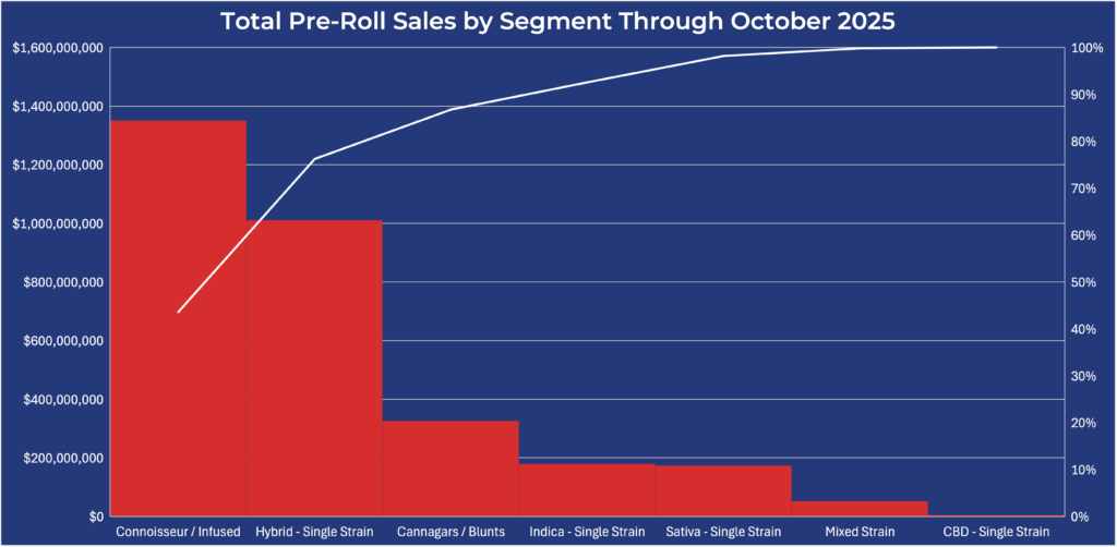Sales drop off beyond hybrids, but Single Strain indica and sativa pre-rolls still represent crucial segments.